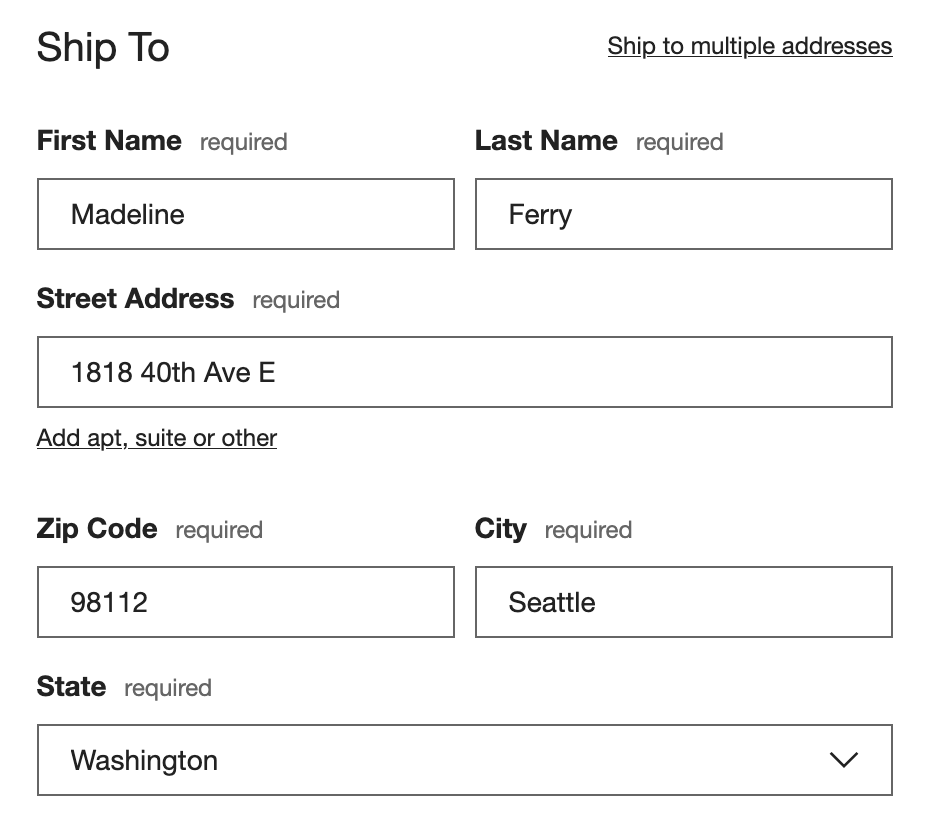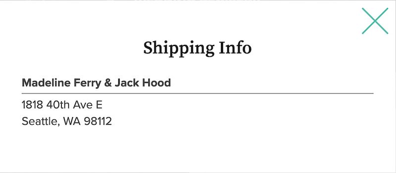 You will need to note our shipping address from the MyRegistry page before you proceed with your item purchase, so that you can enter our information at checkout.