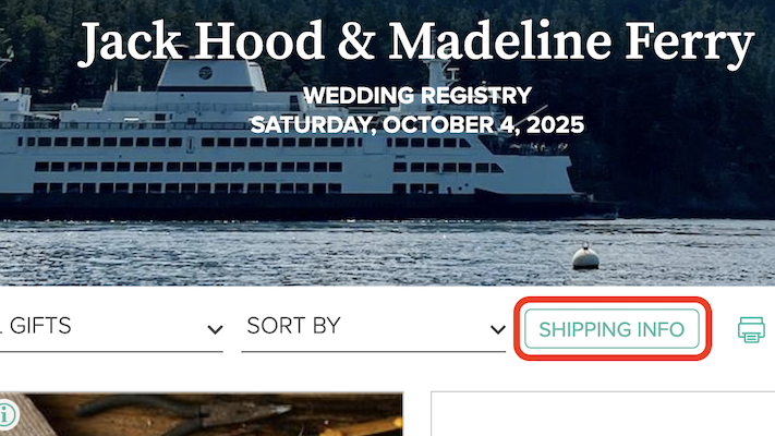 When you reach our MyRegistry site, click the Shipping Info button towards the top of the page.