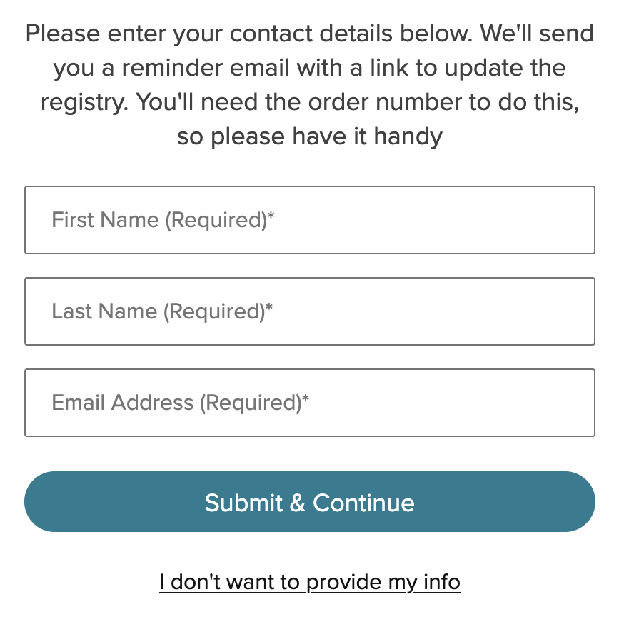 Please Contact Us if you have any questions! Feel free to browse the FAQs on MyRegistry's site as well as you might find a solution there: MyRegistry FAQs: Buying Gifts